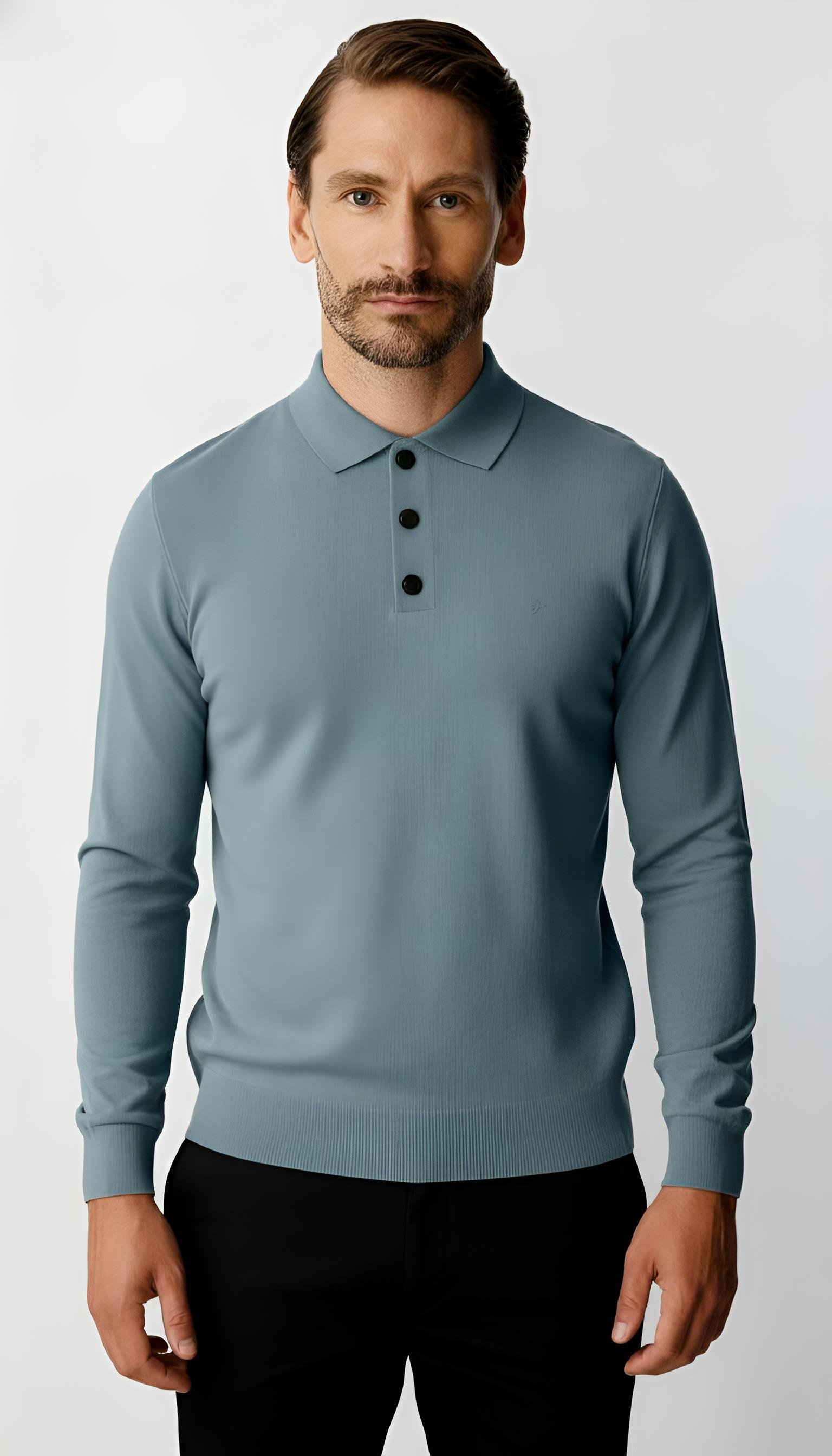 İndigo Standart Fit Dar Kalıp Polo Yaka Düz Uzun Kollu  Triko
