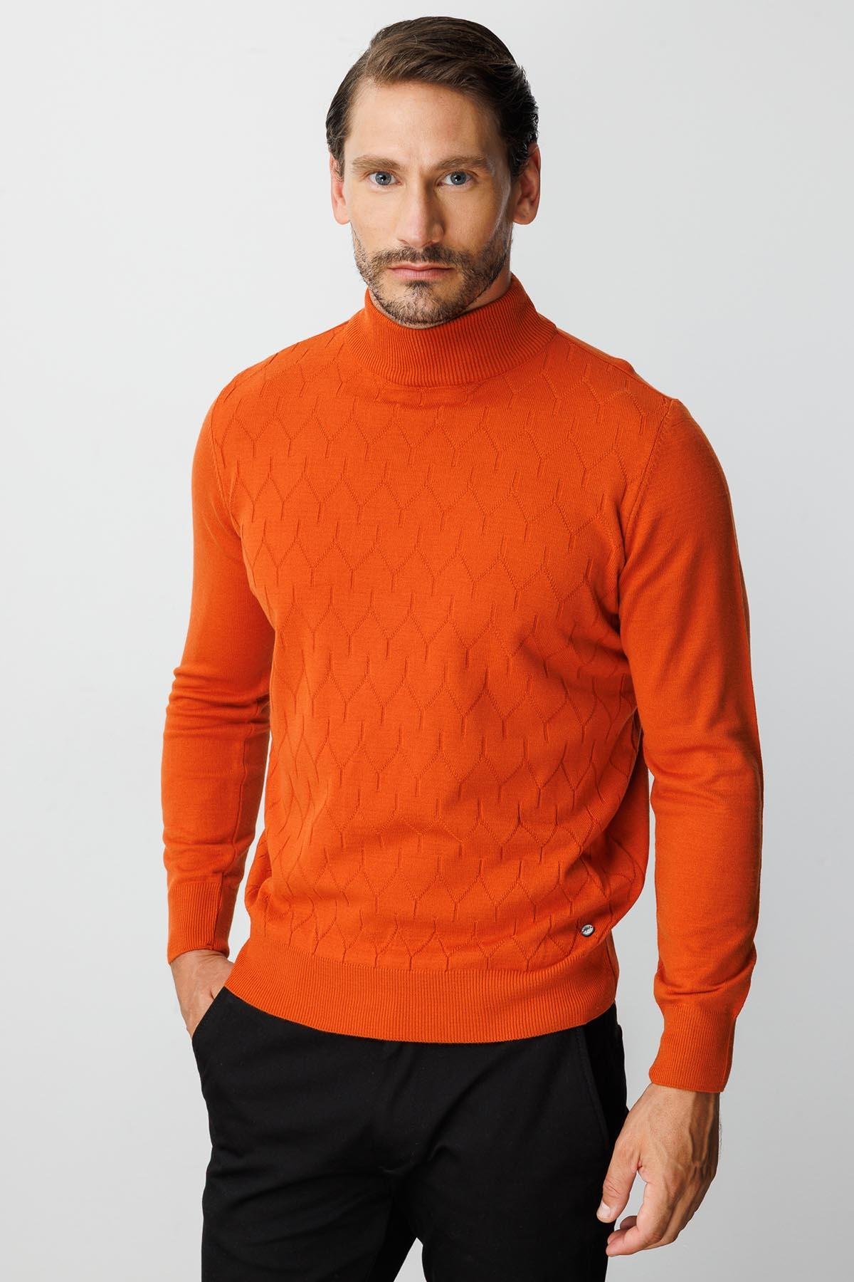 Turuncu Standart Fit Dar Kalıp Yarım Balıkçı Düz Uzun Kollu Triko (2106E2080STD)