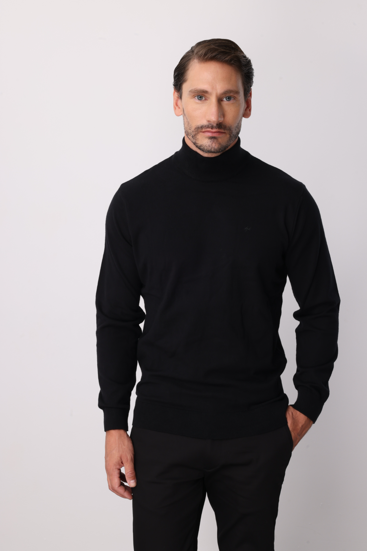 Siyah Standart Fit Dar Kalıp Yarım Balıkçı Düz Triko (2426YB25STD)